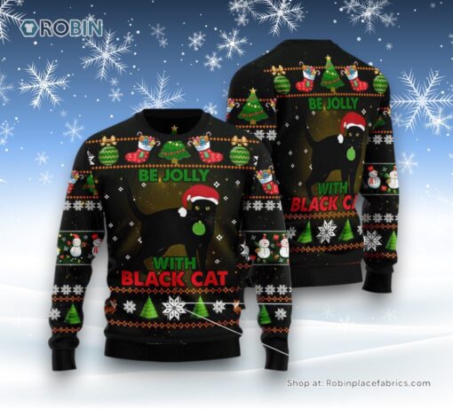 Cat Christmas Ugly Sweater, Black Cat Be Jolly Ugly Christmas Sweater details