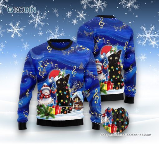 Cat Christmas Ugly Sweater, Black Cat Christmas Night Ugly Christmas Sweater details