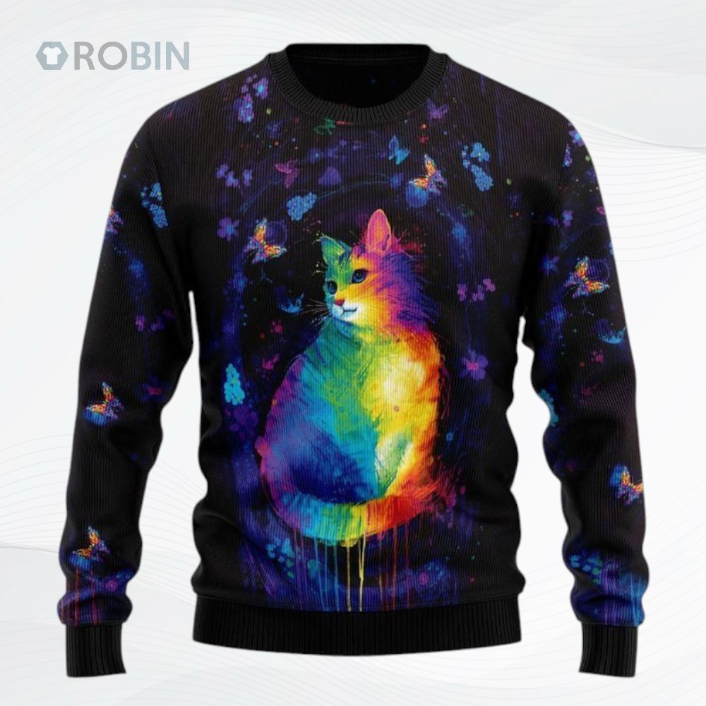 Get ready to sleigh the holidays! 🎄 This festive sweater features adorable cats in a vibrant, all-over print. Purrfect for ugly sweater parties or cozy nights in. A must-have for any cat lover this season! 😻