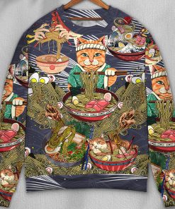 Cat Eating Ramen Lovely Christmas Ugly Sweater, Sweatshirt details