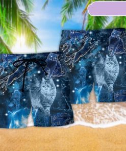 Cat Love Blue Neon Beach Short, Gift for Holiday Summer
