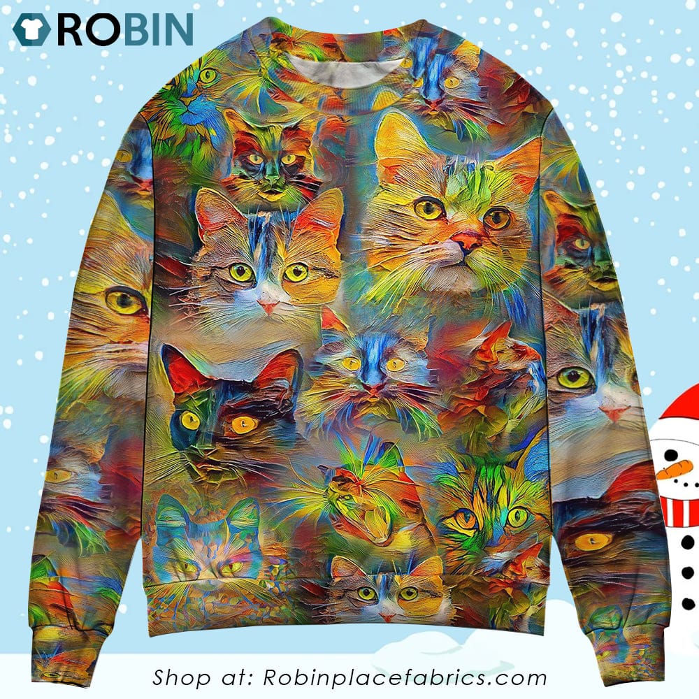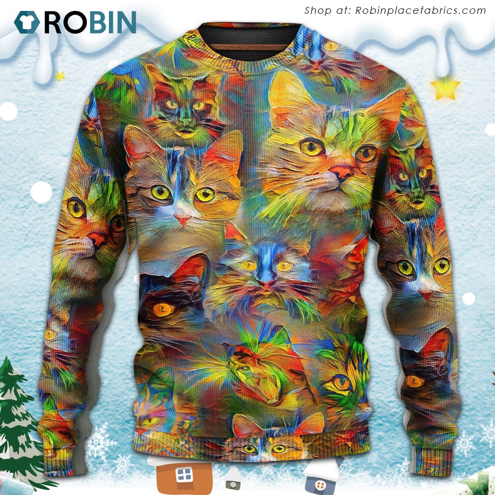 The Cat Lovely Amazing Colorful Ugly Christmas Sweater is a festive and whimsical garment that truly captures the holiday spirit. With its vibrant and joyful color palette, it is the perfect item to wear during the Christmas season. The sweater features a charming cat design, adding a playful touch to the overall look. Although some may consider it unconventional or even ugly, it brings a sense of fun and lightheartedness to any holiday gathering. This unique and eye-catching sweater is sure to be a hit at any Christmas party, making it a must-have for cat lovers and festive fashion enthusiasts alike.