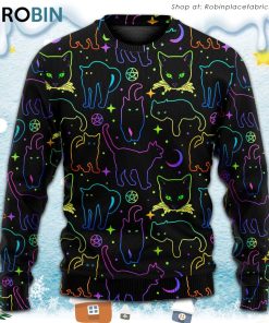 Cat Neon Colorful Playing With Kitten Magical Christmas Ugly Sweater, Sweatshirt details