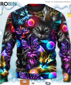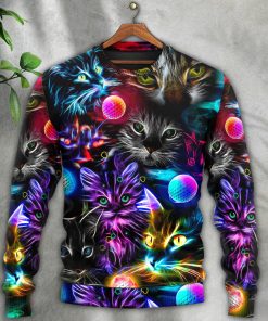 Cat Play Golf Neon Lightning Colorful Style Christmas Ugly Sweater, Sweatshirt details