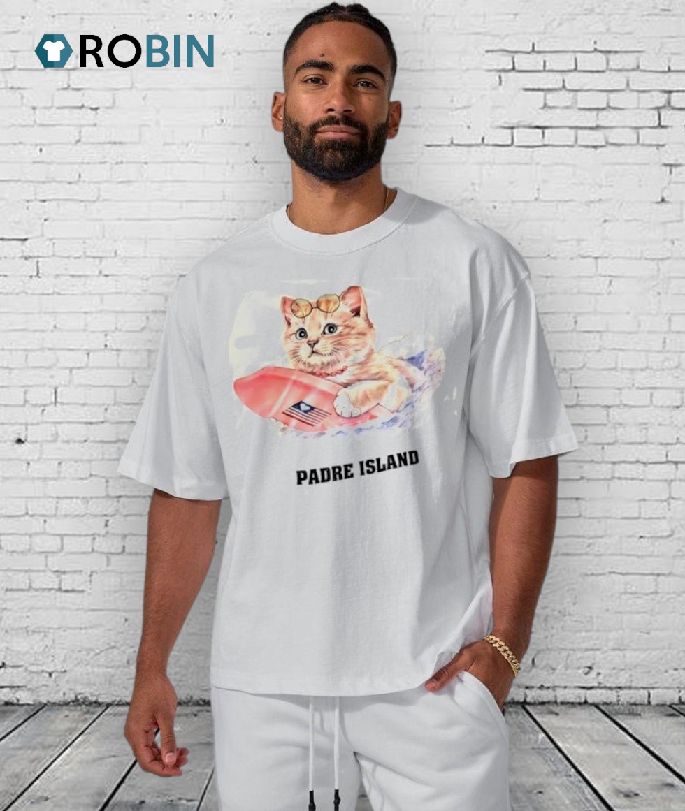 Ever seen a cat riding the waves with style? This playful design brings the beach vibes of Padre Island to life with a sun-kissed kitty cruising on a surfboard! Perfect for cat lovers and surf enthusiasts alike, this shirt adds a splash of fun to your wardrobe. Feel the ocean breeze and let this quirky design spark a smile. Ready to ride the wave of cuteness? Grab yours now!
