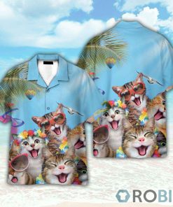 Cats Summer Beach Funny Button's Up Shirts Hawaiian Shirt features
