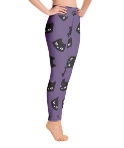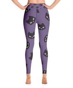 Cats Yoga Leggings Women, Purple Black Cat High Waisted Pants