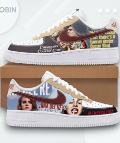 Step into style with our new Lana Del Rey-inspired Air Force 1 shoes. These exclusive kicks will have you feeling like a star as you walk down the street. Crafted with the highest quality materials and attention to detail, these shoes are not just stylish but also comfortable to wear all day long. With a design inspired by Lana Del Rey's iconic album cover, these shoes will make you stand out from the crowd and turn heads wherever you go. Enhance your wardrobe and elevate your look with these must-have shoes that are perfect for any occasion. Don't miss out on the chance to own a piece of fashion history with our Chemtrails Over The Country Club Air Force 1 shoes.