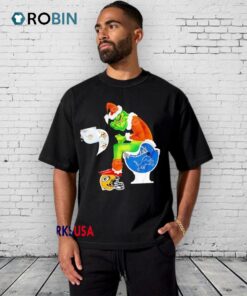 Feeling the holiday spirit with a touch of rivalry? This hilarious design captures the Grinch playfully poking fun at NFL team rivalries. Perfect for football fans who enjoy some festive mischief! Whether you're at the game or a holiday party, it’s sure to spark conversation and laughter. Don’t miss out on adding this fun twist to your Christmas wardrobe. Grab yours today!