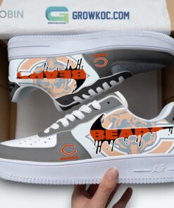 Calling all Chicago Bears fans! Step up your game day attire with these exclusive logo print Air Force 1 sneakers. Show off your team pride in style with these one-of-a-kind kicks that feature the iconic Bears logo emblazoned across the shoe. Whether you're heading to Soldier Field to cheer on your favorite team or just running errands around town, these sneakers are sure to turn heads and start conversations. With their comfortable fit and unique design, these sneakers are a must-have for any die-hard Bears fan. Don't miss out on the opportunity to elevate your fan gear with these limited edition kicks. Order yours today and show the world where your loyalty lies!