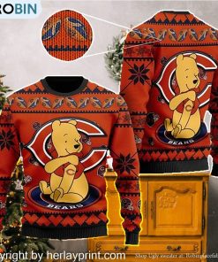 Chicago Bears NFL American Football Team Logo Cute Winnie The Pooh Bear 3D Ugly Christmas Sweater Days details