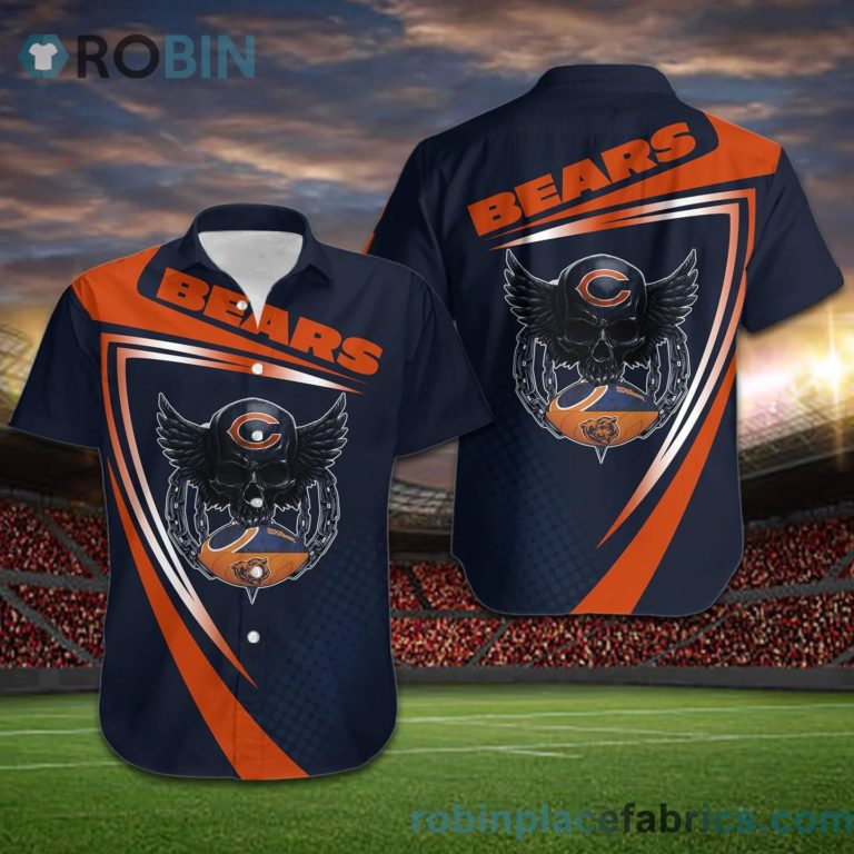 Chicago Bears NFL Skull American Football Short Sleeve Button Down Hawaiian Shirt