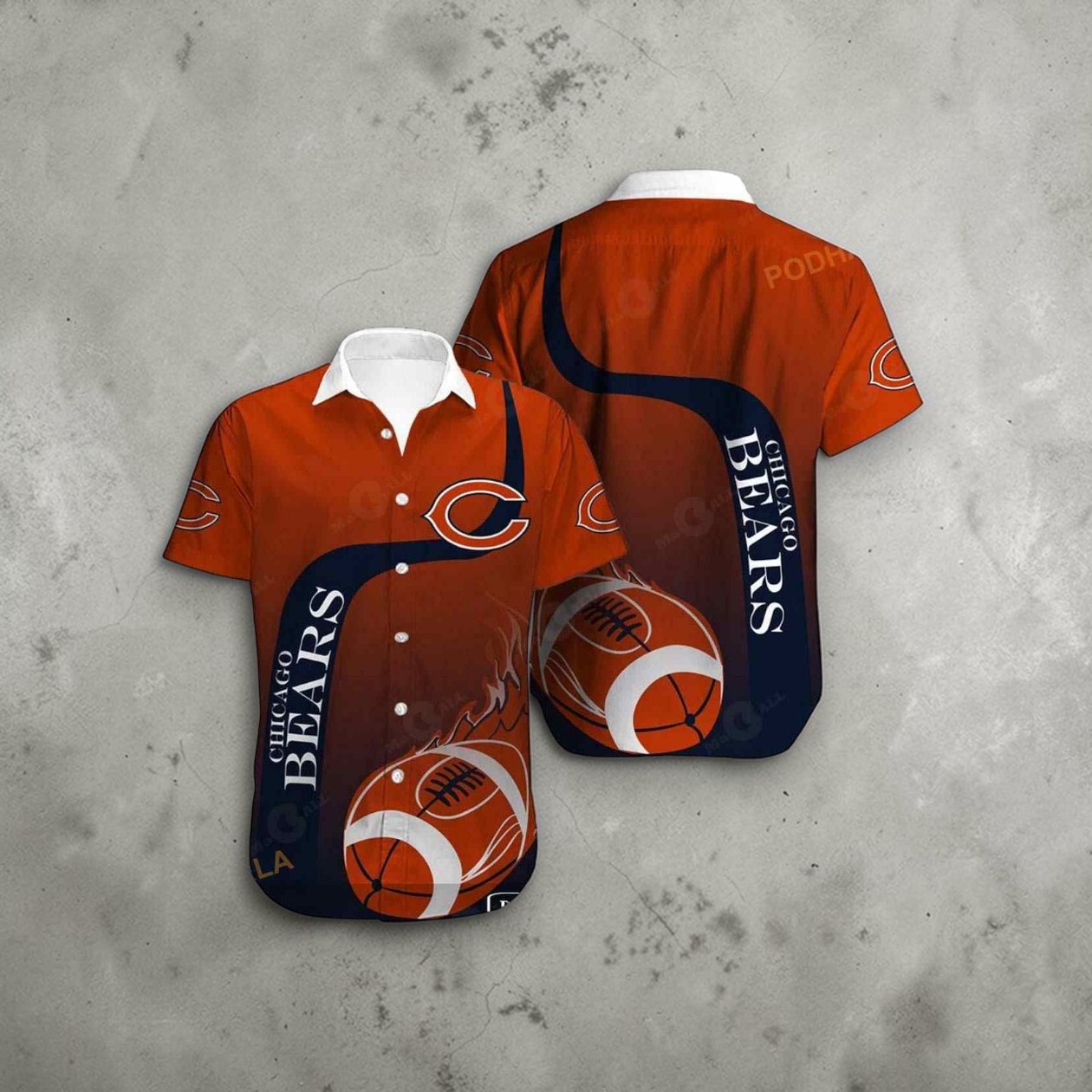 A burst of deep orange meets navy blue across the fabric in bold, sweeping curves that catch the eye without overwhelming. The Chicago Bears Hawaiian shirt channels an athletic spirit through a clever twist: woven basketball motifs lace the design alongside the unmistakable Bears logo. Vertical stripes carve through the background, each adorned with strong, serif-like typography spelling out team pride in a way that demands attention but feels effortlessly retro. This shirt doesn’t just wear the name—it embodies the energy of game day and the culture of devoted fandom. It’s a piece for those who carry their Bears allegiance beyond the stadium, merging boldness with a touch of vintage charm. Whether you’re settled in front of the TV or meeting up with fellow supporters, the design offers a visual shorthand for the passion that binds the community. Collectors who appreciate sportswear with a unique narrative will find something refreshing here. It’s a subtle statement that honors tradition while nodding to an unexpected sports crossover. As a gesture, it fits perfectly into the life of any Chicago Bears supporter who wants their look to reflect heartfelt fandom without sacrificing a relaxed, confident vibe. In this shirt, apparel becomes a conversation starter, a badge of spirited identity in every thread.
