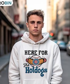 This light-hearted and stylish t-shirt is a great way to show your support for the Chicago Cubs. Featuring bright blue ink on an all-white background, the shirt reads Chicago Cubs Here For The Hotdogs, a playful take on the iconic Cubs motto: “root, root, root for the Cubs!” Not only is it sure to get a few laughs from fellow fans, but it’s also the perfect fan-shirt for game days or watching the Cubs play remotely. Made of cotton and comfortable for all-day wear, this fun and comfortable t-shirt is sure to become a go-to for Cubs fans of all ages.