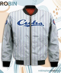 Chicago Cubs MLB Uniform Stripes Custom Name Number Leather Bomber Jacket