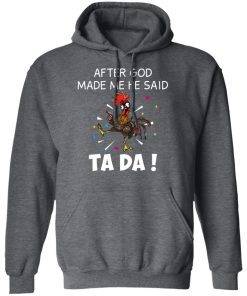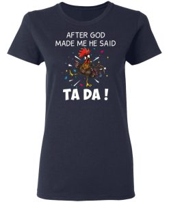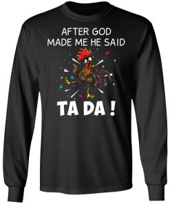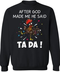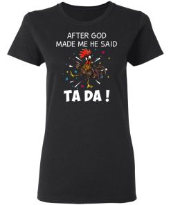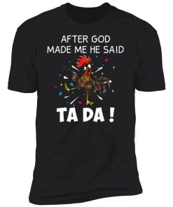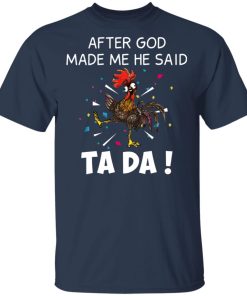 Chicken after god made me he said ta da shirts. Available in t shirt, long sleeve, tank top, hoodie, sweatshirt and multiple color. If you want in another color please contact us.