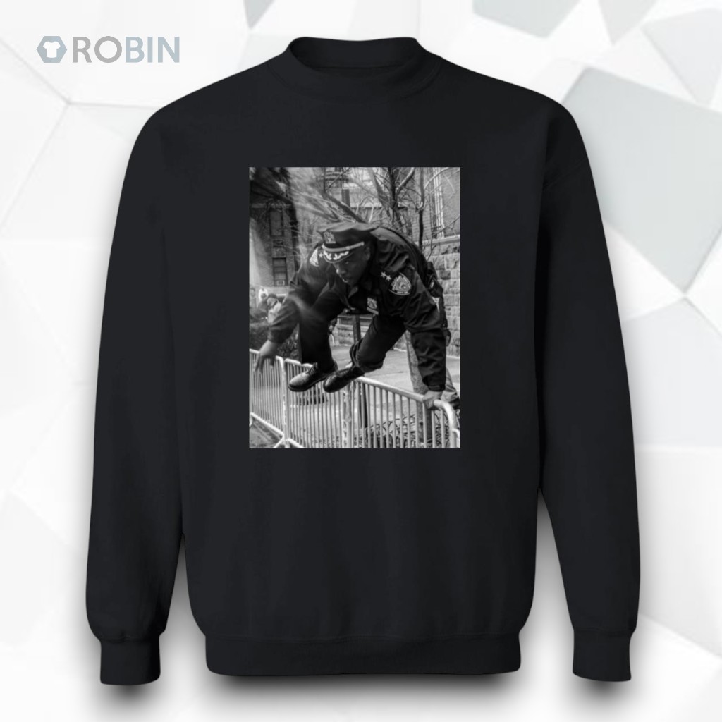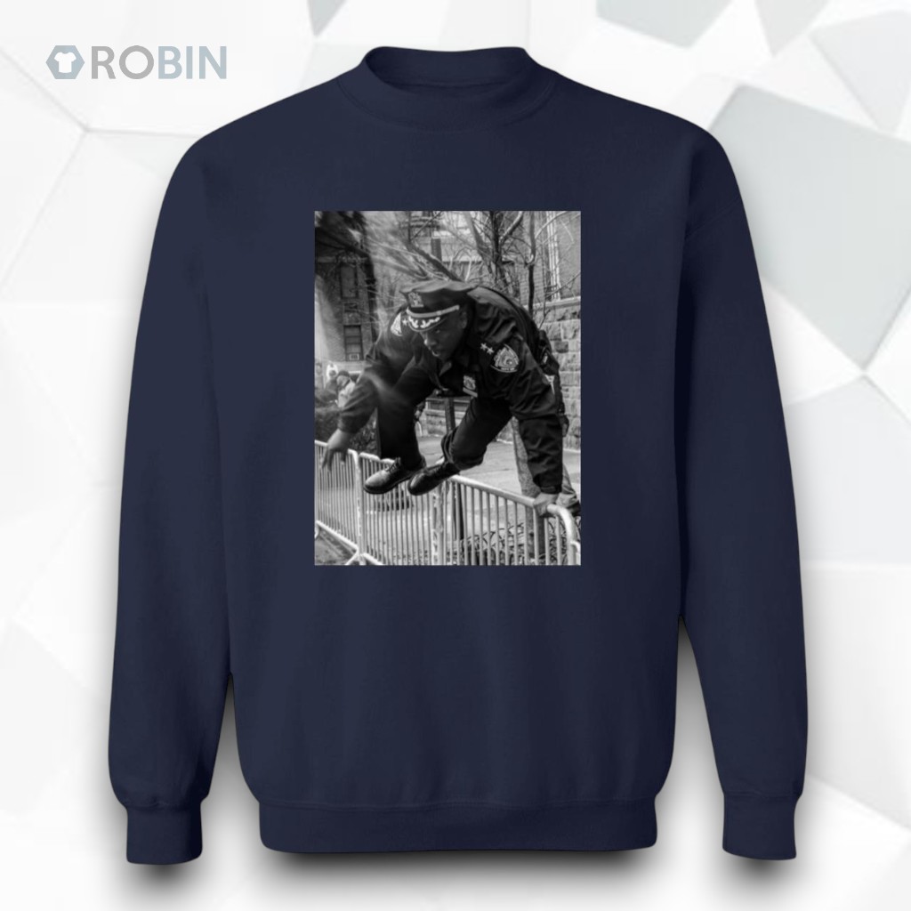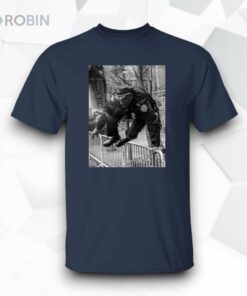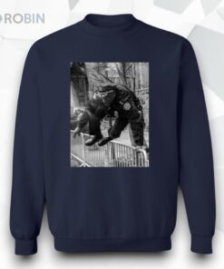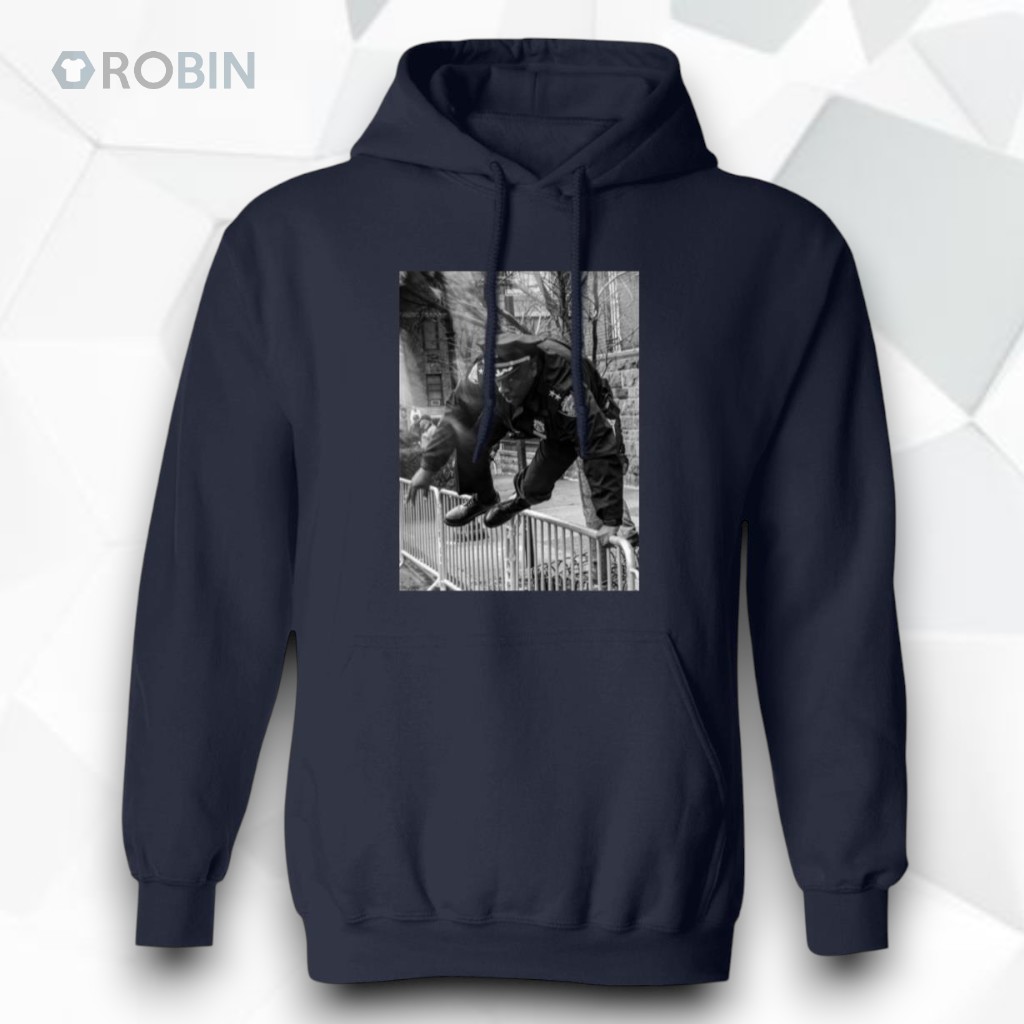 A striking monochrome image dominates the chest, capturing a moment of raw motion: a figure mid-leap, suspended over a barrier with effortless energy. The black and white action photograph frames more than just movement—it encapsulates a bold attitude, a fearless spirit that pulses through urban streets and skate parks alike. The dynamic contrast of light and shadow pulses beneath the fabric, bringing an athletic edge to a minimalist palette. The hoodie’s design steers clear of flashy gimmicks, letting the powerful visual narrative stand on its own. It’s a piece that resonates with those who thrive on velocity, risk, and style grounded in authenticity. The snapshot, labeled simply as the Aaron Edwards blue shirt, carries a cultural weight that melds street savvy with a monochrome elegance—perfect for those who value grit as much as grace. Layered effortlessly over jeans or paired with sneakers that have seen their share of pavement, it’s the kind of statement that speaks quietly but profoundly. Ideal for skateboarders and fans of urban culture, as well as anyone drawn to the intersection of sport and streetwear, it turns everyday wear into an expression of identity and momentum. It also makes a thoughtful gift for friends or family who connect with that raw, kinetic energy found in city rhythms and the art of movement.