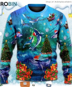 Stay warm and festive this holiday season with the Christmas Whales Under The Sea Christmas Ugly Sweater Sweatshirt. This cozy sweatshirt features a unique and playful design, showcasing adorable whales swimming happily amidst a winter wonderland under the sea. The vibrant and intricate artwork captures the beauty and joy of the holiday season, and is sure to make a statement at any Christmas party or gathering. Made with high-quality materials, this sweatshirt is not only comfortable to wear, but also durable. Let your love for whales and the holiday spirit shine with the Christmas Whales Under The Sea Christmas Ugly Sweater Sweatshirt.