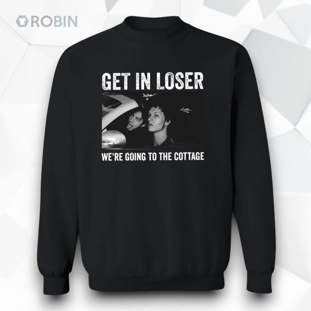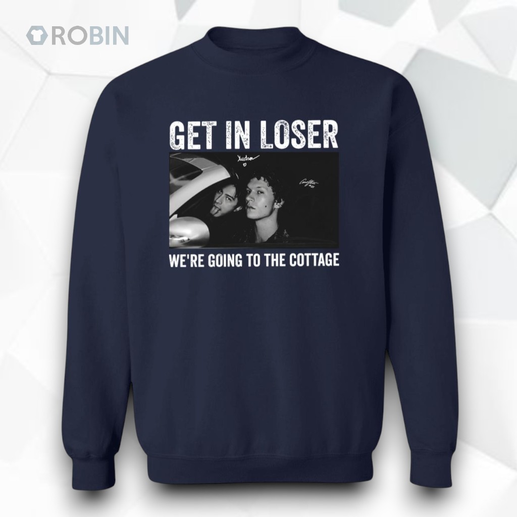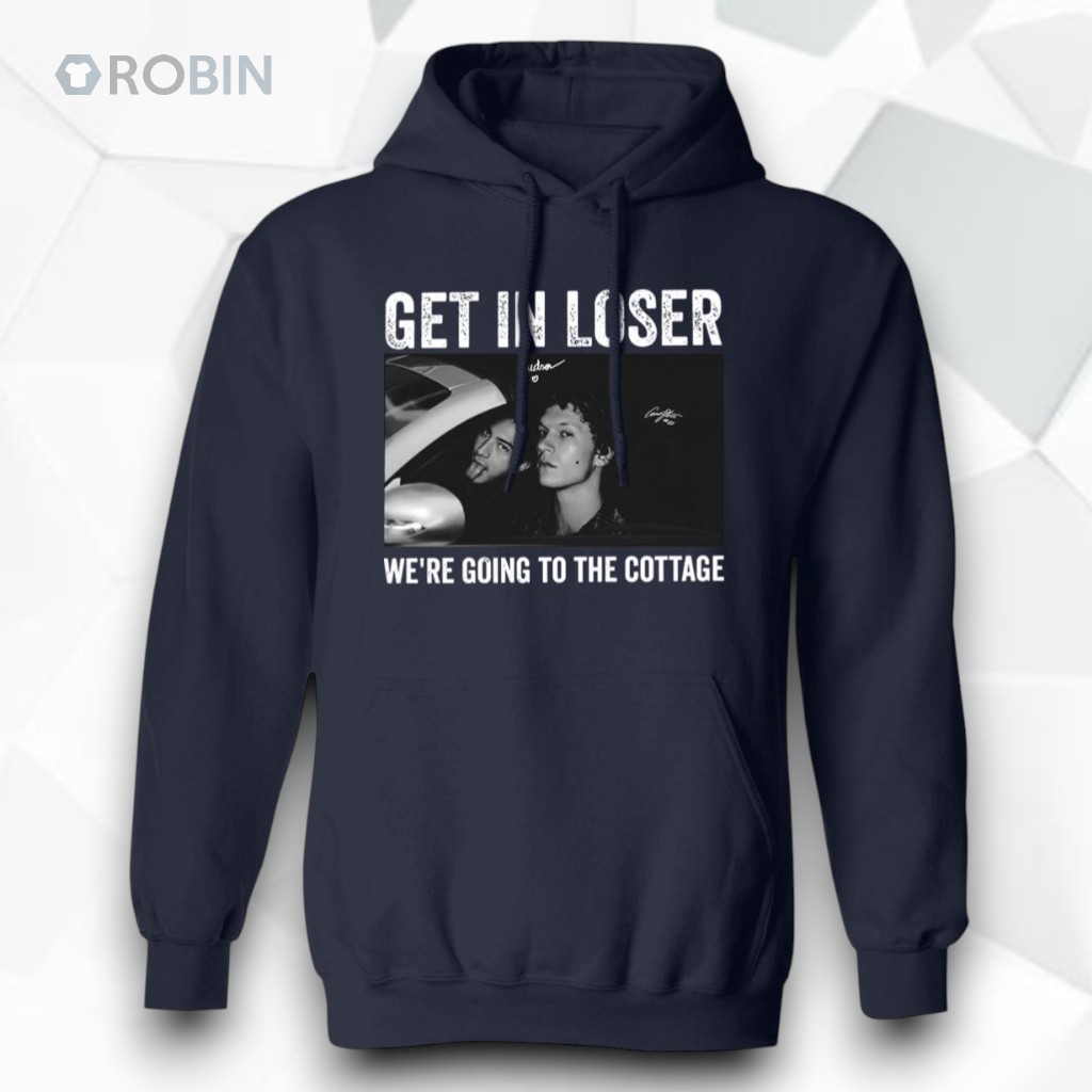 Three sharp, grayscale panels line up across this hoodie like snapshots from a black-and-white indie film, each blurring the boundary between cinematic intensity and streetwise attitude. The worn, blocky letters of the distressed title text stretch across the chest, gripping attention with a rebellious edge: Get In Loser We're Going To The Cottage. It’s a phrase that crackles with insider energy, a nod that’s equal parts call to adventure and sly defiance. The collage isn’t just random imagery slapped together; each panel feels like a frame steeped in tension, capturing moments where rivalry and boldness clash and merge. The rough texture of the font emphasizes a raw, unpolished vibe, perfectly syncing with the urban, gritty undertones of this design. It’s the kind of hoodie that speaks to those who appreciate both visual storytelling and a statement that doesn’t need to shout but refuses to go unnoticed. This piece naturally fits into a closet where pop culture and streetwear collide, where bold individuality reigns. It’s the kind of apparel a young adult deeply invested in rivalry themes—whether through music, film, or sports—would gravitate toward, especially someone who enjoys weaving narrative into their style. As a casual layer on a weekend hangout or a subtle gift for a friend who thrives on dramatic, rebellious flair, it anchors identity in both mood and message without ever feeling forced.