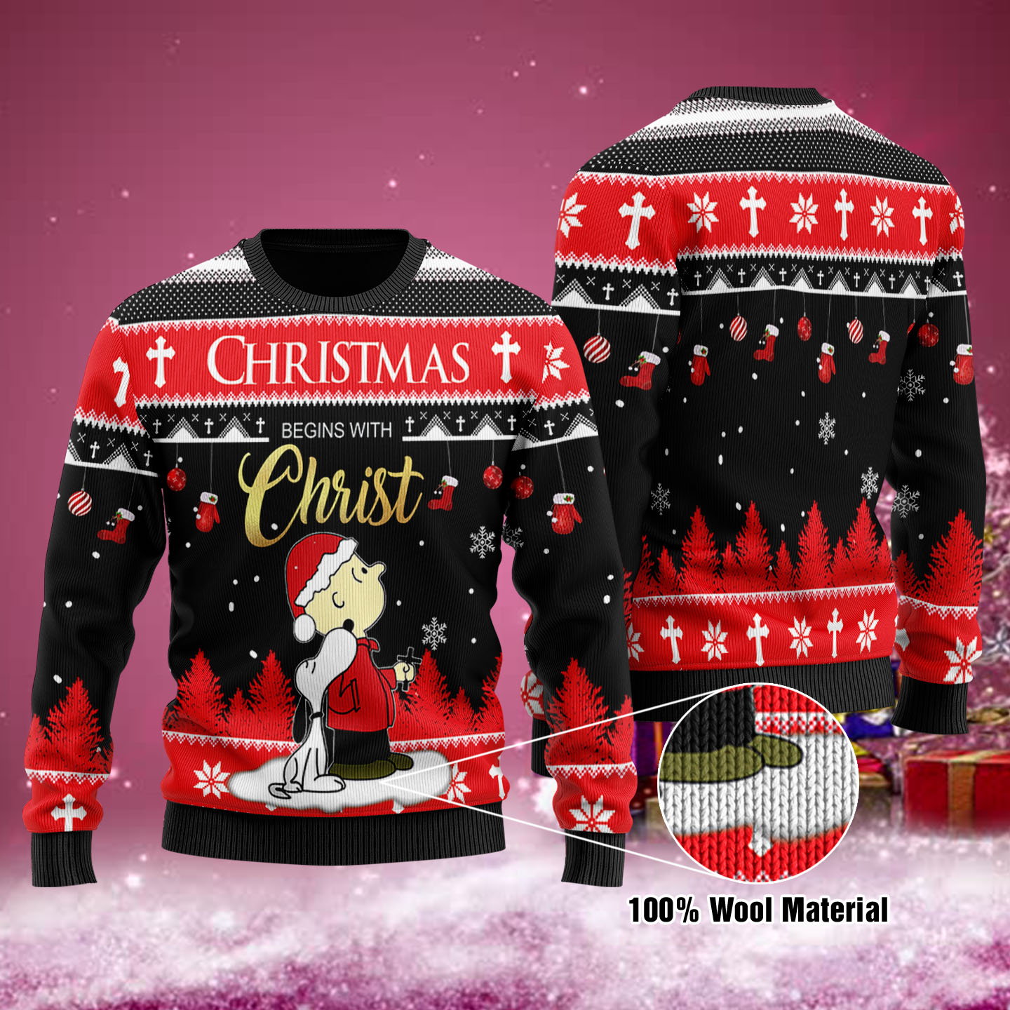 Christmas Begins With Christ Charlie Brown Snoopy Christmas Wool Sweater