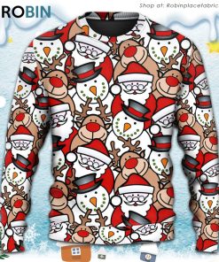 Christmas Cutie Santa And Reindeer Funny Style Ugly Christmas Sweater details