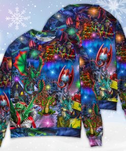 Christmas Dragon Light Art Style 3D Printed Christmas Ugly Sweater details