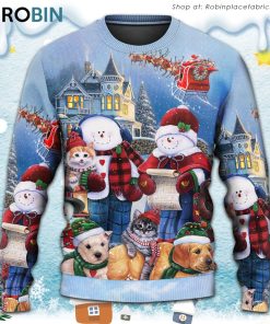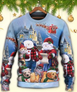 Christmas Family In Love Snowman So Happy Xmas Art Style Christmas Ugly Sweater, Sweatshirt