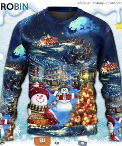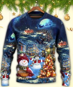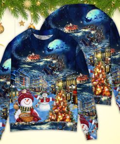 Christmas Family Snowman Santa Claus In Love Light Art Style Christmas Ugly Sweater, Sweatshirt
