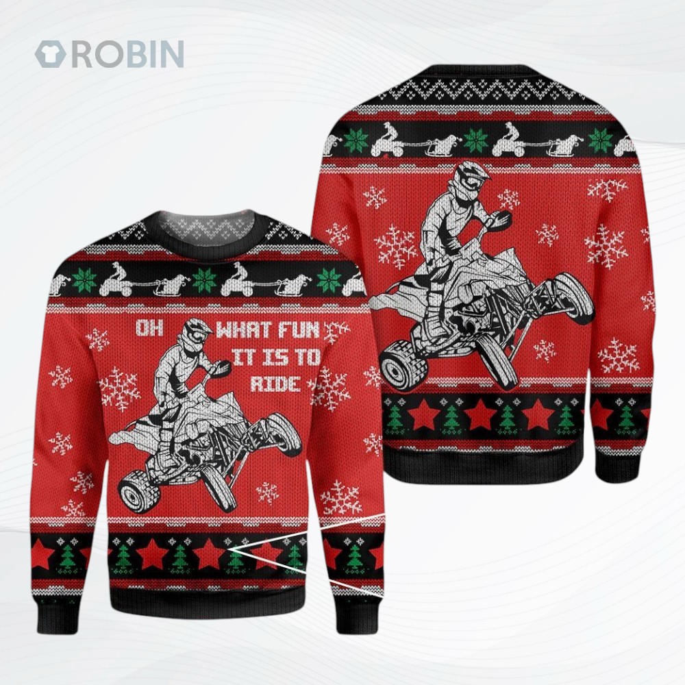 Gear up for holiday cheer with this festive sweater! Featuring a fun four-wheel design, it's perfect for spreading joy and laughter. Get yours today and ride into the season in style!
