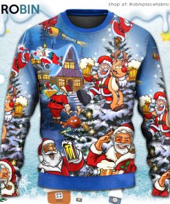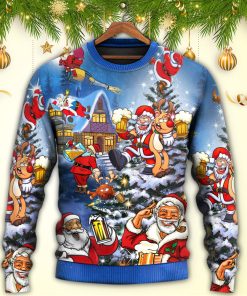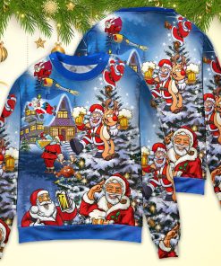 Get ready to spread some holiday cheer with this hilarious and jolly Santa Claus themed sweater! Designed to make you stand out during the festive season, this sweater features a cheeky twist with Santa Claus enjoying a mug of beer. The fun and playful design is perfect for those who like to add a little humor to their Christmas attire. Made from cozy and comfortable material, this ugly sweater is perfect for any casual holiday gathering or Christmas party. Grab a drink, get in the spirit, and let Santa Claus bring a smile to everyone’s face this holiday season!