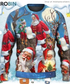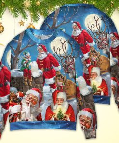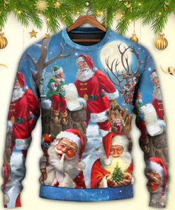 Christmas Funny Santa Claus Elf Xmas Is Coming Blue Sky Art Style Ugly Christmas Sweater details