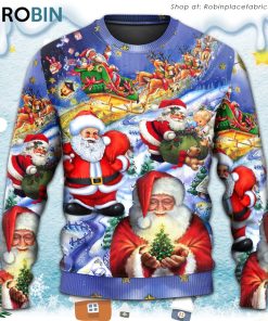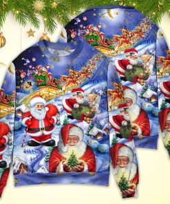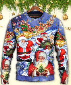 The Christmas season is right around the corner, and what better way to celebrate than with this hilarious and festive Santa Claus sweatshirt! The design is done in a whimsical and fun art style, capturing the joy and excitement of the holiday season. This classic ugly sweater is sure to be a hit at any Christmas party or gathering, with its bold and colorful design. It’s the perfect way to show off your holiday spirit and spread some Christmas cheer. So get ready to deck the halls and spread some laughter this Christmas with this funny Santa Claus sweatshirt!