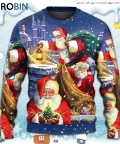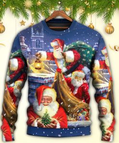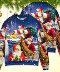 Get ready to spread some holiday cheer with this hilarious and festive Santa Claus-themed ugly Christmas sweater! Crafted in a unique art style, this sweater features a comical scene of Santa Claus up on a rooftop, possibly delivering presents or getting into some mischievous adventures. Made with utmost attention to detail, the sweater captures the playful spirit of Christmas. It is perfect for those who want to make a statement at holiday parties and gatherings with its fun and quirky design. Embrace the holiday season in style and let the laughter and festive vibes fill the air with this one-of-a-kind and utterly amusing ugly Christmas sweater.