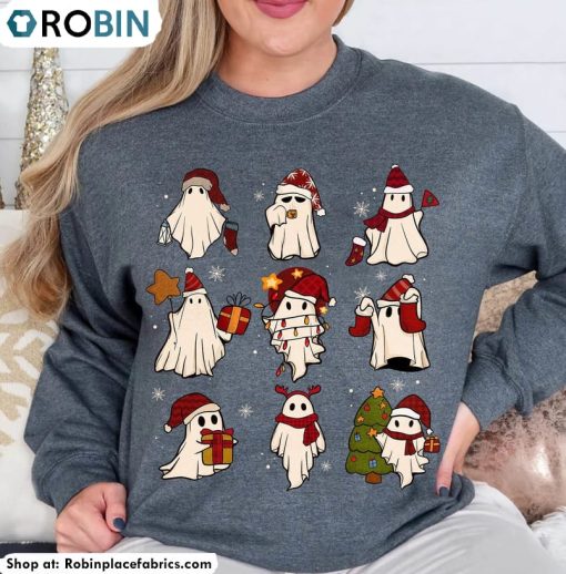 Christmas Ghost Shirt Ghost Santa Unisex Tee Long Sleeve Hoodie details