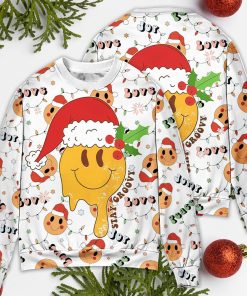 Christmas Hippie Groovy Santa Claus Smile Face Ugly Christmas Sweater details