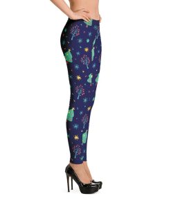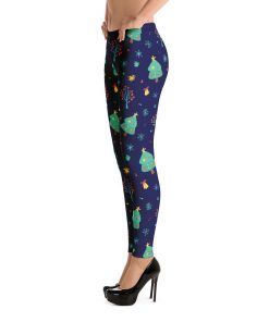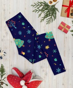 Christmas Leggings, Blue snowflakes Xmas Tree High Waisted Leggings