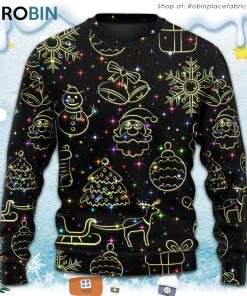 The Christmas Neon Light Stary Amazing Night Ugly Christmas Sweater is a fun and festive addition to any holiday wardrobe. This sweater features a unique design with neon lights that create a starry night scene. The vibrant colors and twinkling lights make this sweater stand out in a crowd. It is the perfect choice for those who want to make a bold statement at holiday parties or events. With its comfortable fit and soft fabric, this sweater is sure to be a favorite during the holiday season. Whether you wear it to a family gathering or a night out with friends, the Christmas Neon Light Stary Amazing Night Ugly Christmas Sweater is sure to bring joy and laughter to everyone around you.
