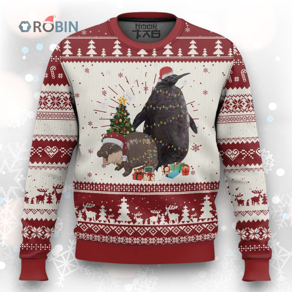 Get ready for holiday hilarity! This sweater mashes up internet sensations into one ridiculously adorable, yet undeniably ugly, design. Perfect for meme lovers and festive fun. Grab yours before they waddle away! Limited edition – don't miss out!