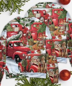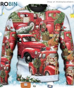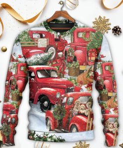 Christmas Red Truck With Xmas Tree And Little Puppy Ugly Christmas Sweater details