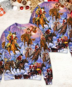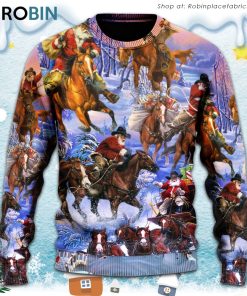Christmas Santa And Horse Ho Ho Ho Everywhere Merry Xmas Christmas Ugly Sweater, Sweatshirt