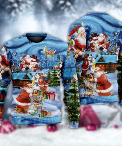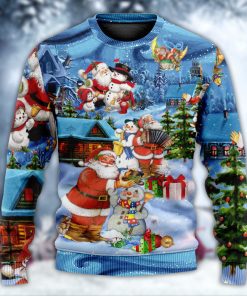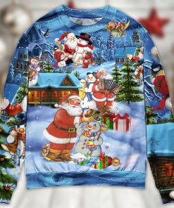 Celebrate the holiday season with this festive and playful sweater. This cozy garment features a jolly Santa Claus and a cheerful snowman, showcasing their heartwarming friendship. The intricate details and vibrant colors bring this delightful duo to life, instantly spreading holiday cheer. Made with the softest materials, this ugly Christmas sweater ensures comfort and warmth throughout the chilly winter months. Whether you’re attending an ugly sweater party or simply want to embrace the holiday spirit, this sweater is the perfect addition to your winter wardrobe. Get ready to make a statement and bring smiles to everyone’s faces with this adorable Santa and snowman sweater.