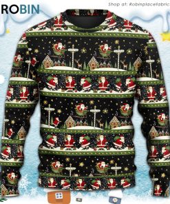 The Christmas Santa Claus Big Night Ugly Christmas Sweater is the perfect attire for the holiday season. This sweater is designed with a festive and whimsical pattern that showcases Santa Claus on his big night of delivering gifts. The sweater features vibrant colors and intricate details, making it a standout piece for any Christmas party or gathering. It is made of cozy and comfortable material, ensuring that you stay warm and stylish throughout the night. With its fun and playful design, the Christmas Santa Claus Big Night Ugly Christmas Sweater is a must-have for anyone looking to embrace the holiday spirit.