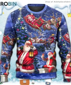 Christmas Santa Claus Chilling Happy Xmas Light Art Style Christmas Ugly Sweater, Sweatshirt details