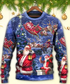 Get into the festive spirit with our Christmas-themed sweatshirt in a unique and eye-catching light art style. This delightful holiday sweater features a jolly Santa Claus chilling out, complete with his traditional red outfit and white beard. The vibrant colors and intricate details make this sweatshirt a stand-out piece for any Christmas party or gathering. Made from a cozy and comfortable material, it’s the perfect choice to keep you warm during the chilly winter months. With its fun and playful design, this ugly sweater is sure to put a smile on everyone’s face and spread the holiday cheer.