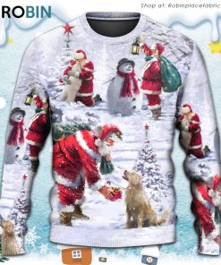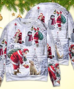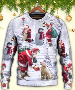 Christmas Santa Claus Chilling With Animal Snowman Happy Xmas Art Style Ugly Christmas Sweater details