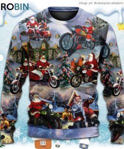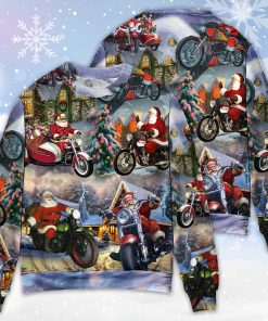 Christmas Santa Claus Driving Motorcycle Bike Gift Light Art Style Ugly Christmas Sweater details