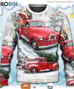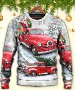 Christmas Santa Claus Red Truck Xmas Is Coming Art Style Ugly Christmas Sweater