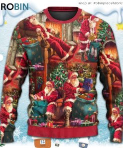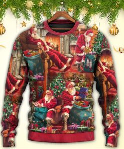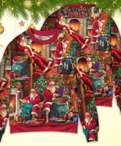 Christmas Santa Claus Story Chilling Happy Xmas Art Style Christmas Ugly Sweater, Sweatshirt