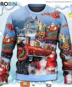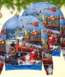 Christmas Santa Claus Train Gift For Xmas Painting Style Ugly Christmas Sweater details