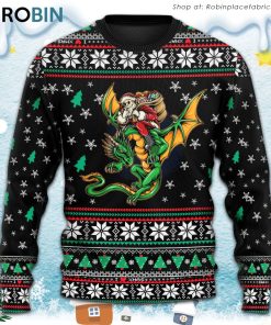 Celebrate Christmas in a unique and whimsical way with this Santa Claus and Dragon Christmas Ugly Sweater Sweatshirt. This quirky design combines the traditional Christmas figure of Santa Claus with a fierce and mythical dragon. The sweater features a cozy sweatshirt material that will keep you warm during the holiday season. With its festive colors and playful design, this sweater is sure to bring joy and laughter to any holiday gathering. It’s a perfect gift for anyone who loves a touch of fun and adventure in their Christmas celebrations. Get ready to spread some holiday cheer with this one-of-a-kind Christmas sweater.